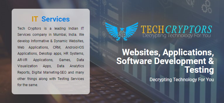 IT Services Tech Cryptors is a leading Indian IT Services company in Mumbai, India. We develop Informative & Dynamic Websites, Web Applications, CRM, Android-IOS Applications, Dekstop apps, HR Systems,...