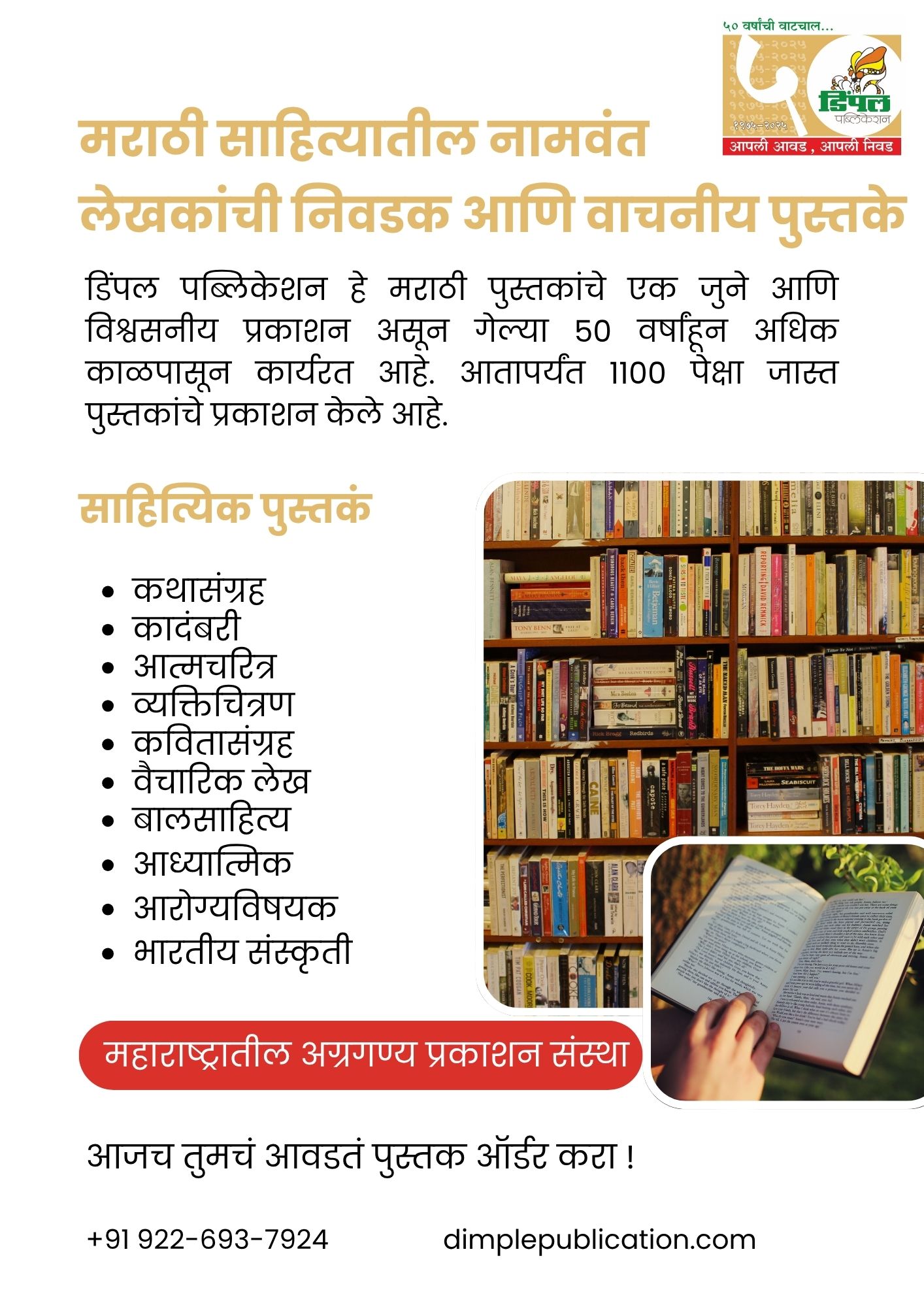 Dimple Publication is one of Maharashtra’s oldest and most respected Marathi book publishers, with a legacy spanning over 50 years. With a catalogue of more than 1,000 titles across academic, literary, and competitive exam categories, the publication has supported generations of students and readers.